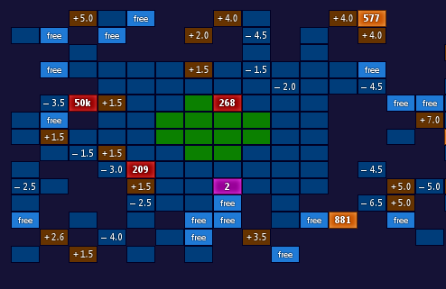 The other two new types are teleports and jackpots. Teleports pop up randomly on the grid and only last a short while. They tend to be one-way and will let you quickly escape to a new part of the map, or pull off a surprise attack. The jackpots are also random and, if you capture them, provide a decent sized one-off increase in army size. Another addition is Free squares and Safe squares. Free squares cost nothing to sit in and nothing to move into or out of (normally your army decreases a small amount each time you move, kind of like a real army dying of starvation or falling off a cliff or something.) Safe squares you can’t be attacked, and should you be attacked you are automatically moved here.