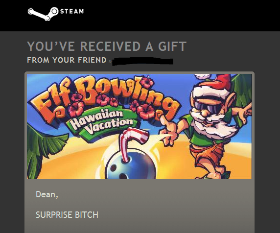 Phishing has long been a tradition of Steam. Barely a month will go by without someone telling you how to get free games or SteamAdmin telling you to go log-in to re-validate your account on www.thisislegitsteamsite.tk. However, this is usually through the Steam chat where fake URLs are hard to cover up. Recently scammers have a new tactic through sending you emails informing you that you’ve been gifted a game.